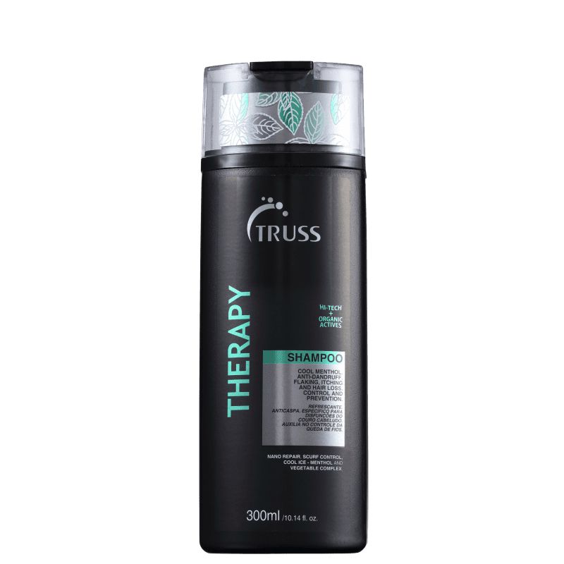 Refrescante, Truss Therapy Shampoo possui ação antifúngica, de forma a combater a caspa e as descamações. Ele também hidrata, regula a oleosidade e estimula a circulação sanguínea para ajudar no crescimento dos fios. Com ele, você sente seu couro cabeludo purificado, com redução de até 95,8% das caspas e até 75% da oleosidade excessiva.