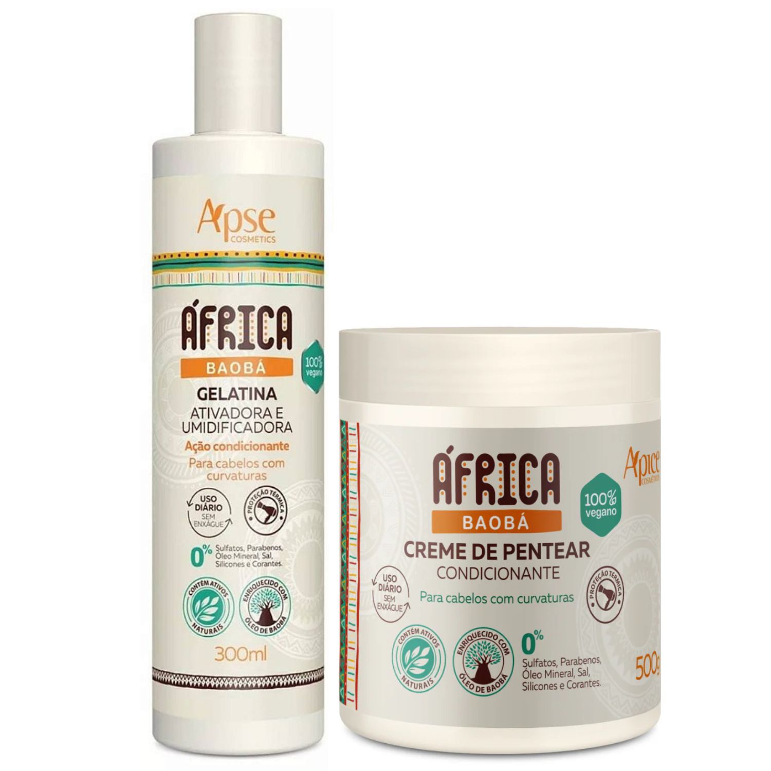 1 Gelatina 300ml: Por possuir ácidos graxos, é absorvido pelo cabelo e assim, auxilia no brilho dos fios, protegendo-os da radiação solar, água do mar e do cloro da piscina. Também ajuda a manter a coloração por mais tempo, pois previne o desbotamento. Proteção térmica que retém água na fibra capilar, formando uma película protetora