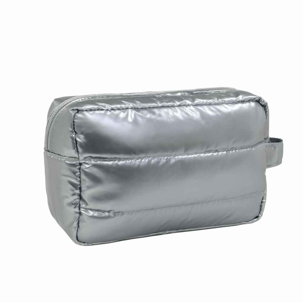 A nécessaire exclusiva que acompanha o kit possui acabamento prata cromado, com textura premium e toque macio, ideal para armazenar seus produtos com elegância e praticidade.