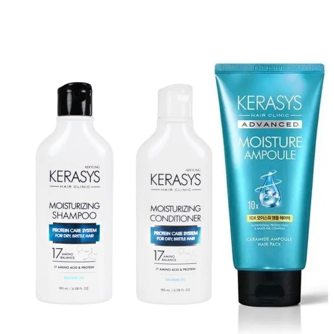Enriquecida com 17 aminoácidos essenciais e proteínas hidrolisadas, a linha Kerasys Moisturizing reforça a estrutura dos fios, melhora a elasticidade e reduz a quebra, garantindo cabelos mais fortes, maleáveis e revitalizados.