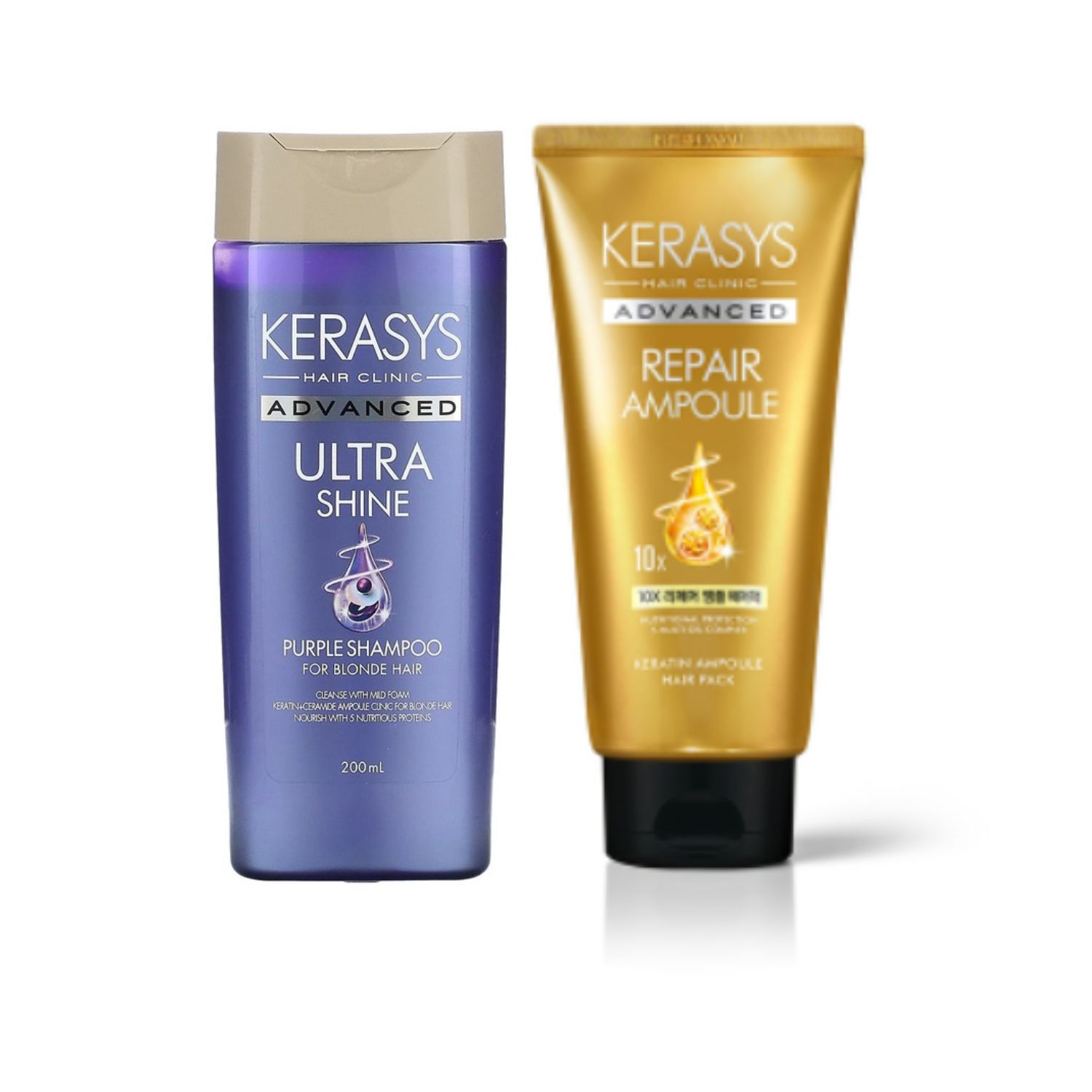 1 Shampoo Purple 200ml: Shampoo para cabelos loiros . Kerasys Advanced Ultra Shine Purple Shampoo neutraliza e esfria o tom enquanto limpa.